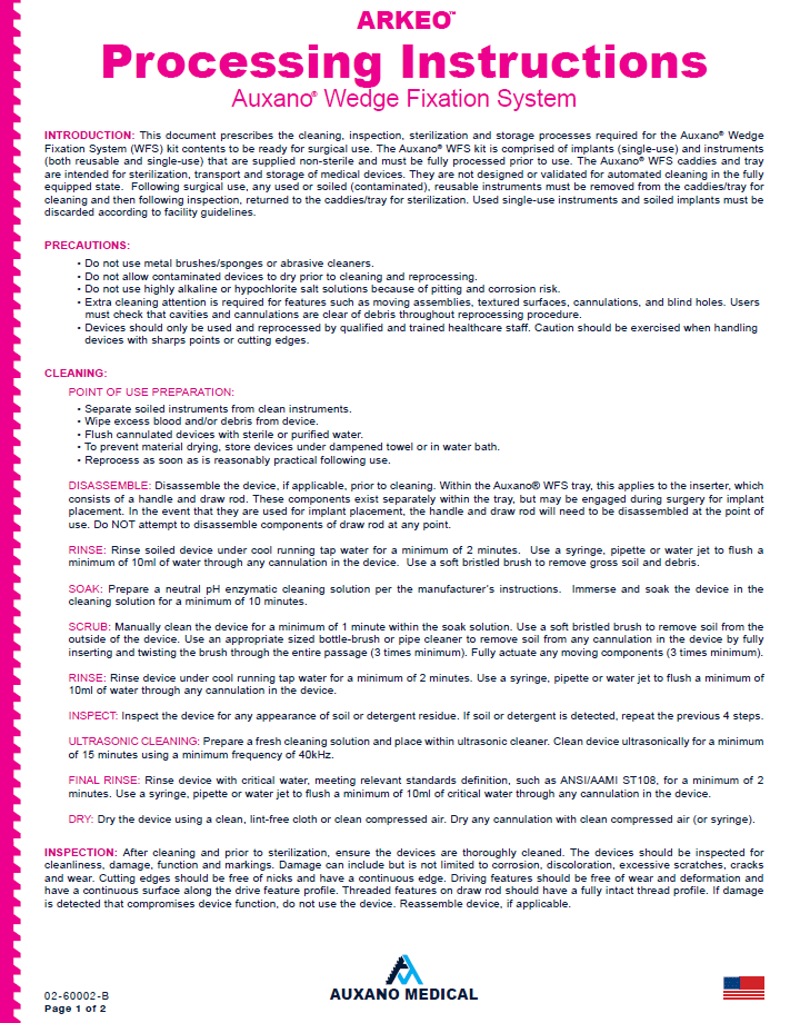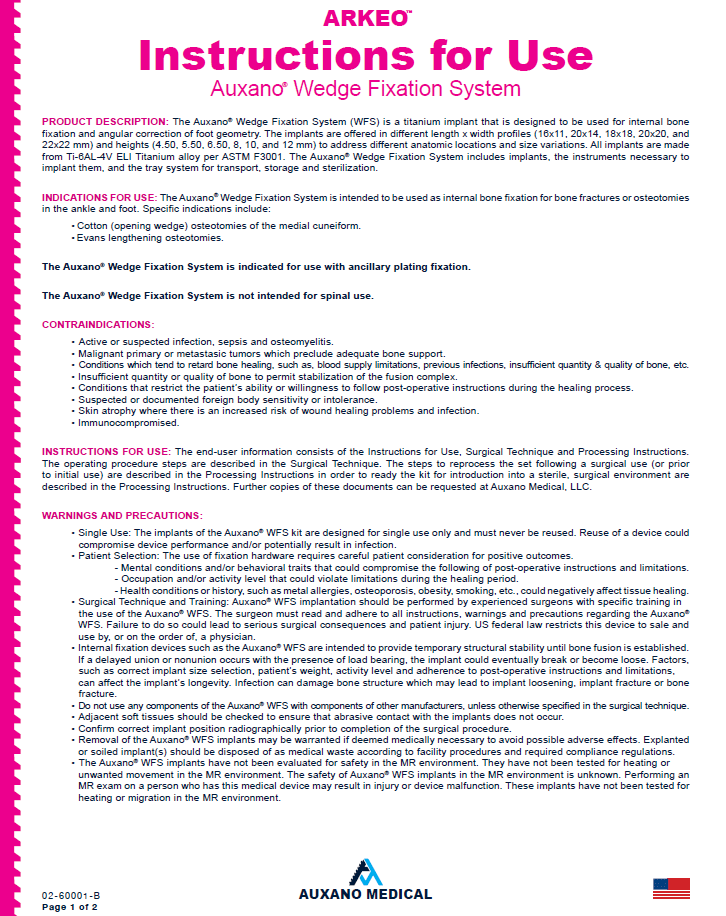 The ARKEO™ implant design integrates an anatomic shape with Auxano® technology to provide stability at the site of correction. Featuring a large, central graft window and an open, 3D printed architecture, graft placement is convenient, and graft capacity is maximized. Built for precision and control, our integrated instrumentation empowers surgeon confidence and supports accurate, consistent placement from patient to patient.